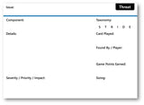 Threat cards help facilitate scoring and capture the work identified during your EoP session. The purpose of the cards is to capture as much information as you naturally generate in conversation during the game, and add details as you plan fixes later.